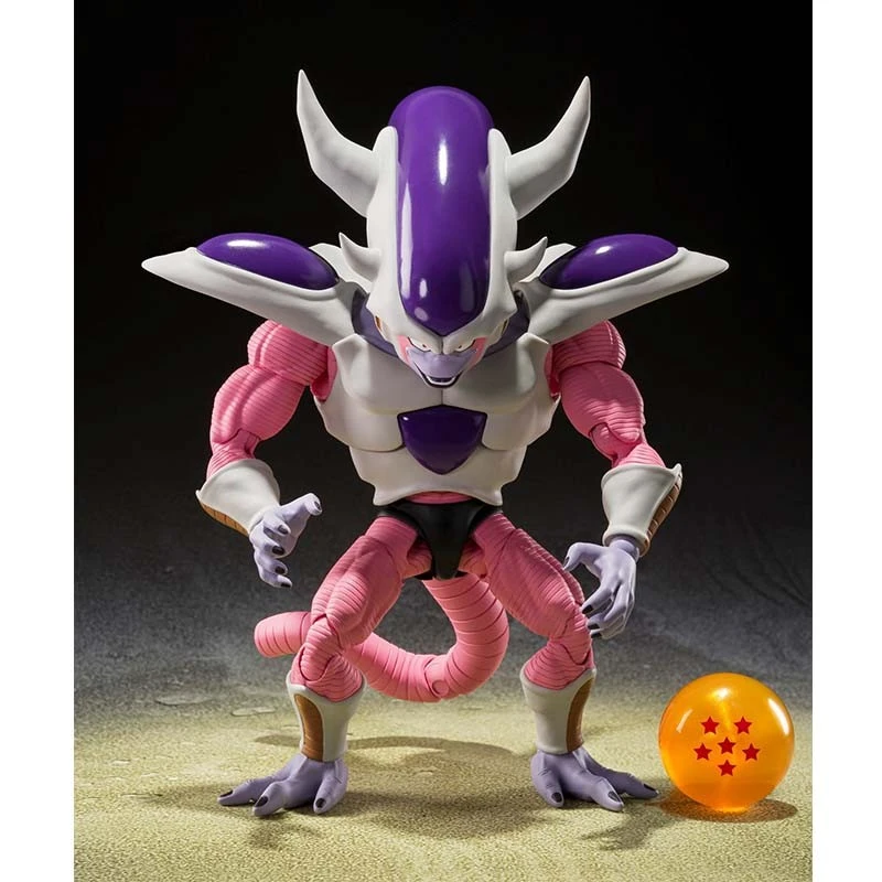 Dragon Ball Z Figurine Freezer dans troisième forme dans la gamme S.H. Figuarts du fabricant Bandai Tamashii. Figurine Dragon Ball Z articulée en PVC, taille : 17 cm avec de nombreux accessoires de Freezer dans sa troisième transformation.