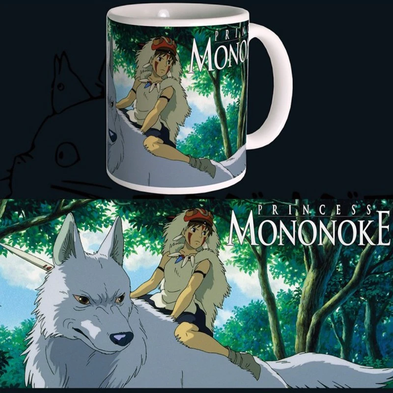 Studio Ghibli Mug Princesse Mononoké. Tasse en céramique officielle Ghibli contenance 340 ml de Princesse Mononoké et la louve Moro