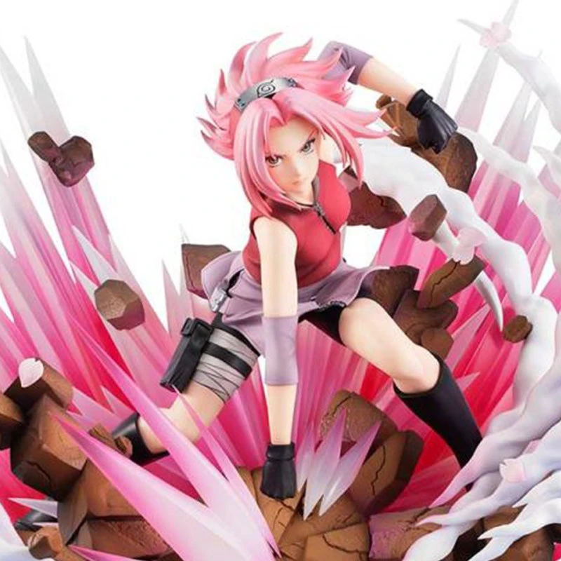 Naruto Shippuden Figurine Sakura Haruno dans la gamme Gals DLX version 3 du fabricant Megahouse. Statuette manga en PVC, taille: 28 cm sur socle décor de Sakura.
