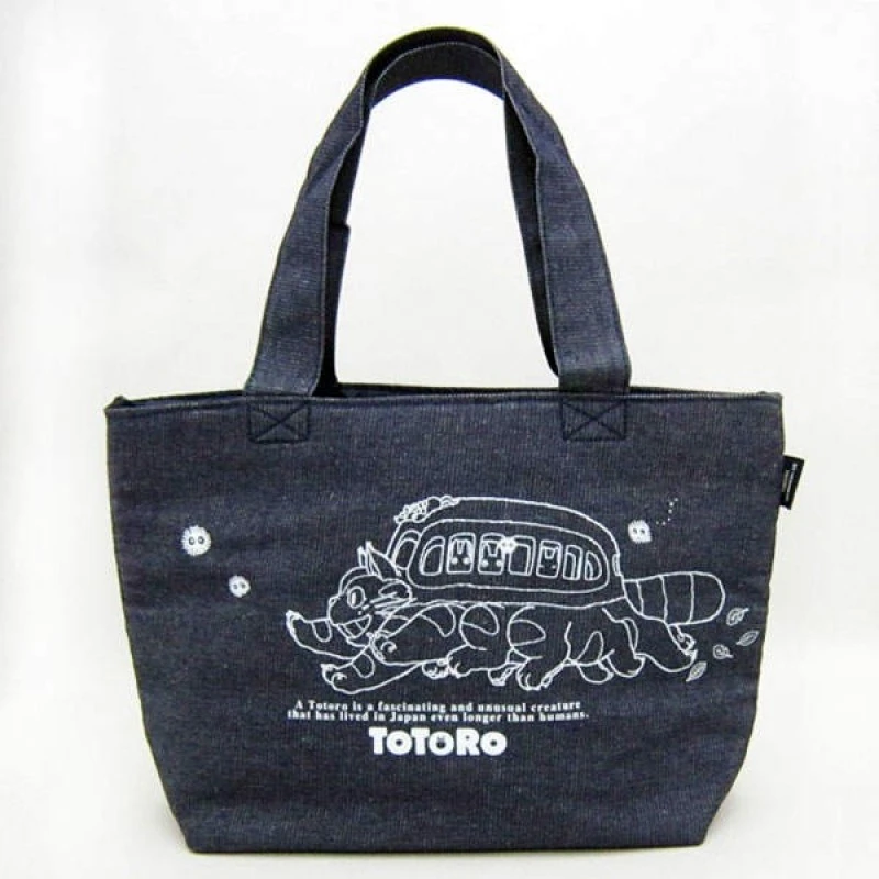 Mon Voisin Totoro Sac Cabas Jeans du Chat Bus. Sac officiel Studio Ghibli taille :Â L 26 cm x H 40 cm en jeans avec une illustration du Chat Bus.